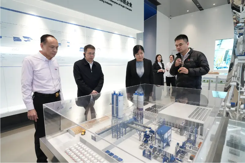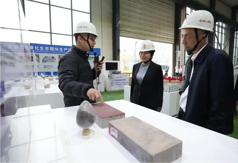 Tại khu vực trưng bày mẫu gạch, ông Liu Min cùng đoàn đã khảo sát nhiều mẫu gạch thân thiện với môi trường và thiết thực, đồng thời nghe thuyết trình về quy trình sản xuất sản phẩm và các kịch bản ứng dụng. Họ khen ngợi Công ty TNHH Quangong Machinery vì cam kết phát triển xanh và các sáng kiến nhằm thúc đẩy việc sử dụng chất thải rắn hiệu quả, khuyến khích công ty phát triển nhiều sản phẩm phù hợp với cả chính sách của chính phủ và nhu cầu thị trường.