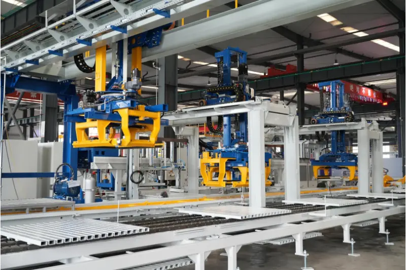 ✅ Tự động hóa cao: Tích hợp toàn bộ quy trình làm việc—từ trộn mẻ tự động, đúc khuôn thông minh và xử lý/xếp pallet đến giám sát và điều khiển kỹ thuật số—hệ thống đạt được hoạt động "tắt đèn" (tối thiểu) hiệu quả cao trong suốt quy trình. Điều này không chỉ giúp tăng đáng kể hiệu quả sản xuất mà còn đảm bảo tính ổn định và khả năng kiểm soát chất lượng sản phẩm.