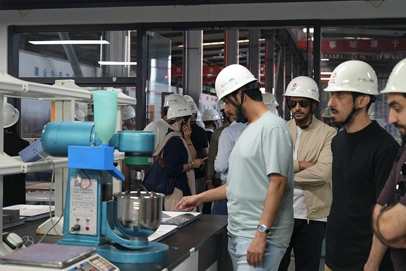 Trong phòng thí nghiệm sản xuất gạch, phái đoàn đã chứng kiến năng lực R&D "theo yêu cầu riêng" của Quanzhou Machinery. Là cơ sở nghiên cứu và phát triển được thành lập cùng với các trường đại học như Đại học Phúc Châu và Đại học Kiến trúc và Xây dựng Bắc Kinh, nó được trang bị thiết bị phát triển công thức và thử nghiệm vật liệu tiên tiến, có khả năng cung cấp các giải pháp sản xuất gạch được cá nhân hóa dựa trên đặc điểm của nguyên liệu thô, điều kiện khí hậu và yêu cầu dự án trong khu vực của khách hàng.